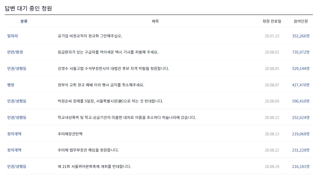 국민청원 목록 1페이지 > 대한민국 청와대