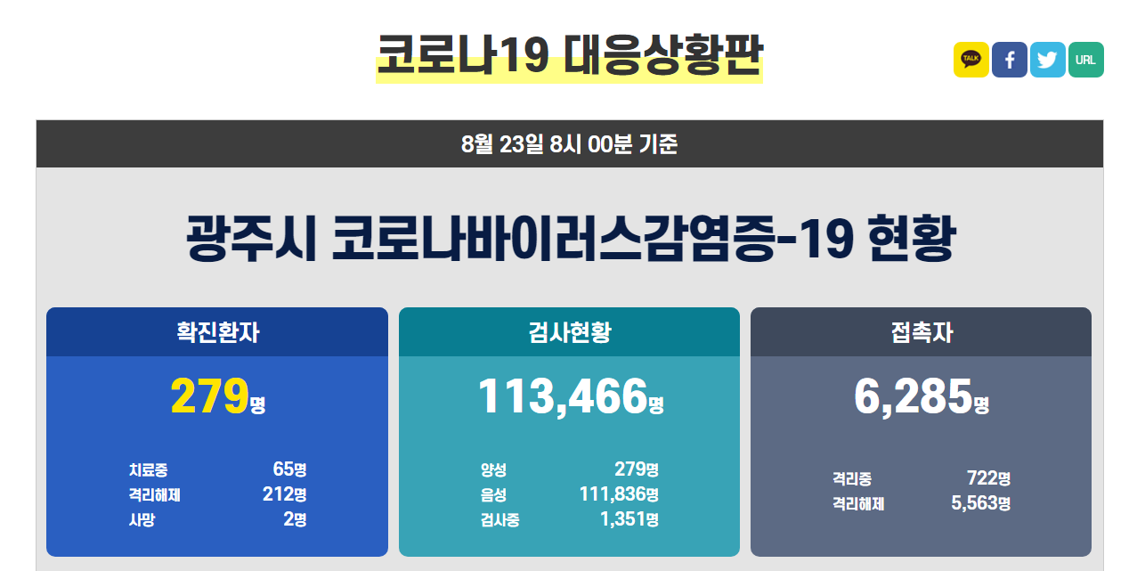 코로나19 광주광역시 현황