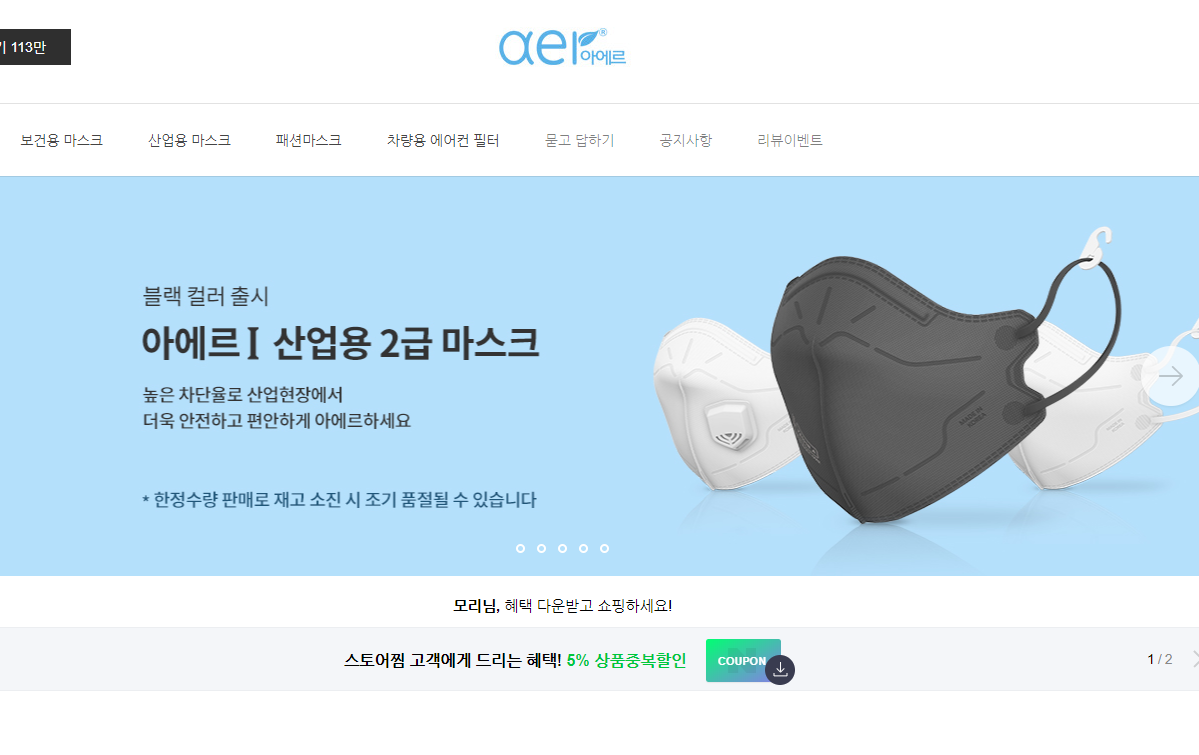 아에르샵 마스크 쇼핑몰에서는 아에르 산업용 2급 마스크도 판매하고 있으니 참고 바랍니다.