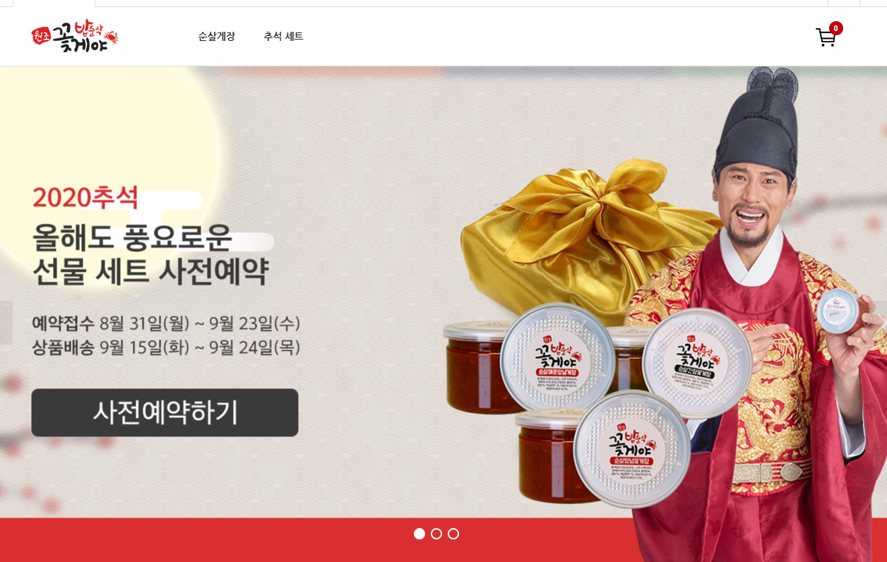 밥순삭꽃게야 쇼핑몰 홈페이지에서는 추석을 맞아 2020년 추석 선물 세트 사전 예약이 진행중입니다. 부모님, 할아버지 할머니 선물로 게장 선물 어떠실까요? 아니면 소중한 지인들에게도 추석 선물로!! 저도 고민 중입니닷 ㅎㅎ