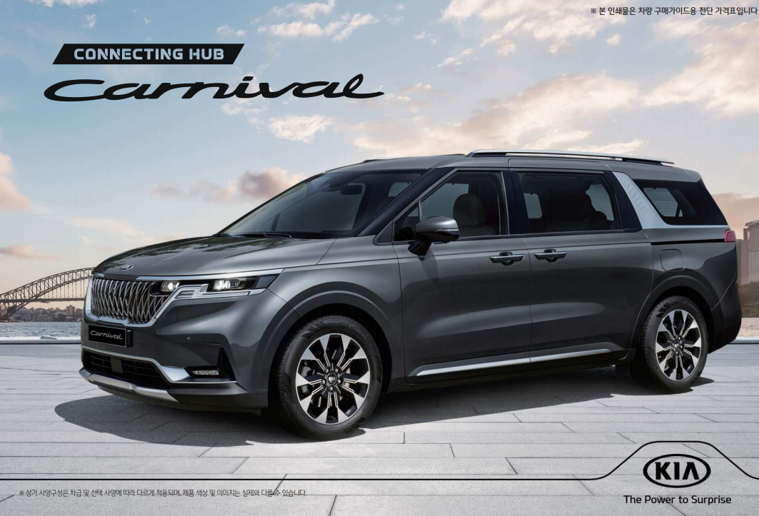 우선 신형 카니발을 먼저 살펴볼게요. 커넥팅 라이프의 시작!! 대형차 중에서는 인기가 많은 7인승 차량이죠. 그랜드 카니발부터 지금까지 꾸준한 사랑을 받고 있는 것 같아요.