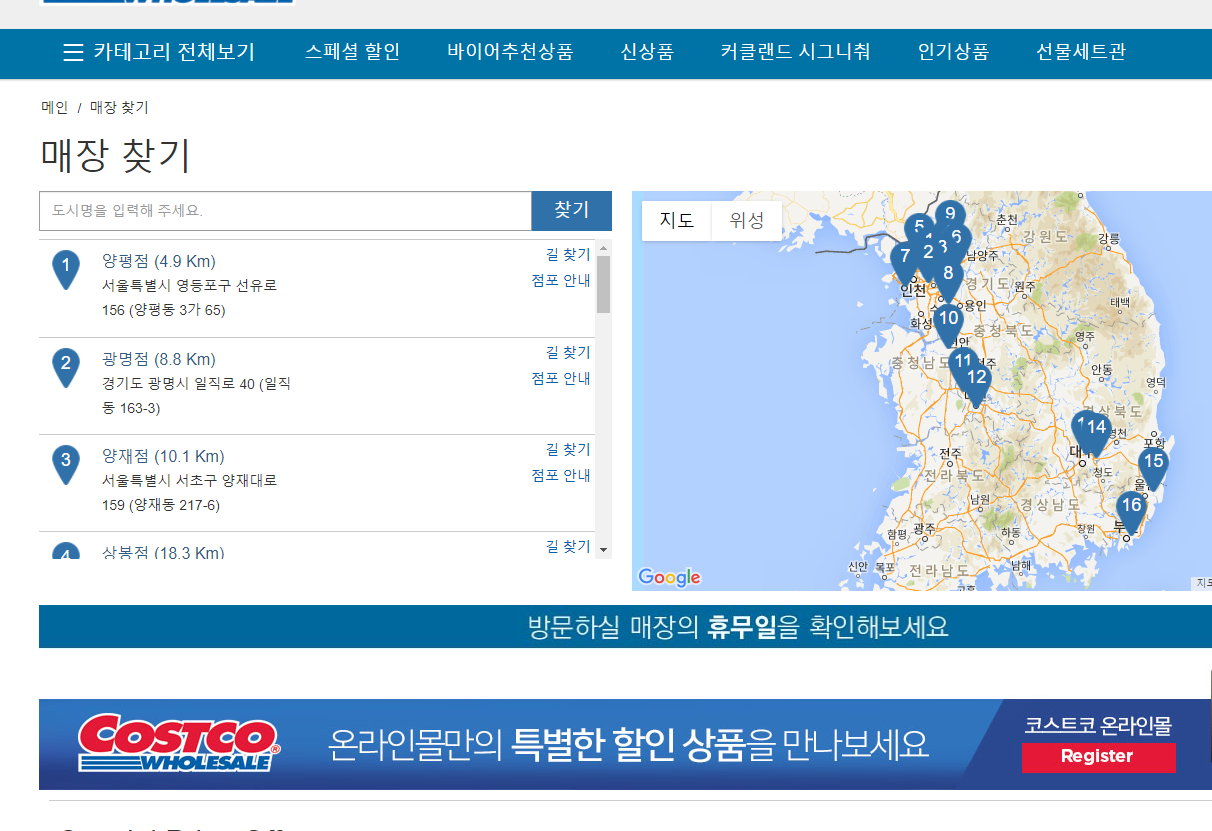 코스트코 매장은 전국에 있는데요. 양평점, 광명점, 양재점, 상봉점, 대전점 등이 있습니다.