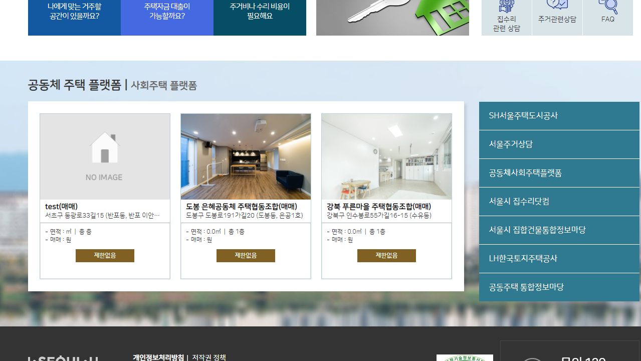 SH공사와 LH공사의 공공임대 정보도 확인할 수 있고요. 공동체 주택도 찾아볼 수 있어요. 역세권 청년주택에 대한 정보도 찾아볼 수 있고요.