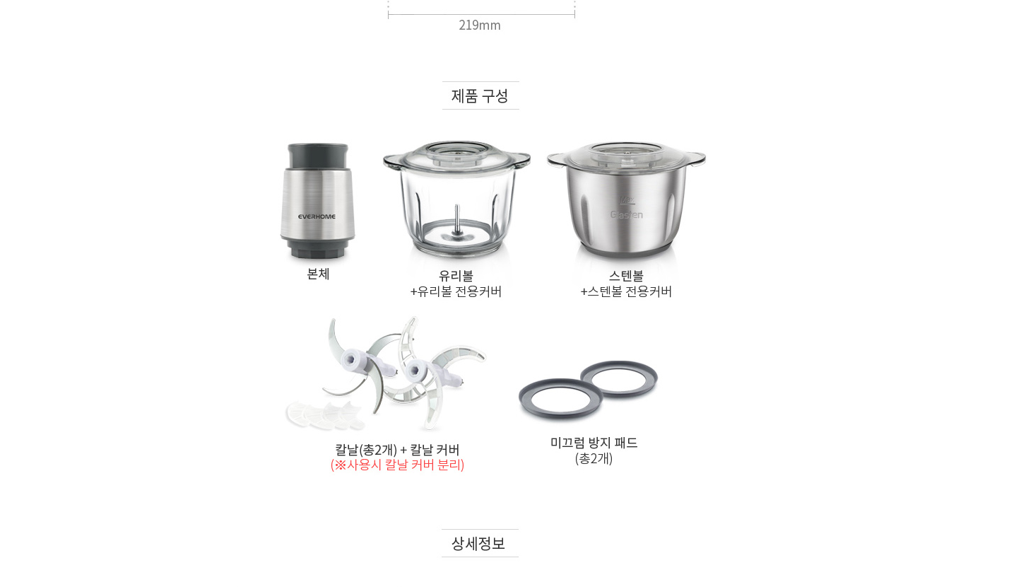 에버홈 글라스텐 다지기의 구성입니다. 구매는 아래 주소 클릭하시며 됩니다.