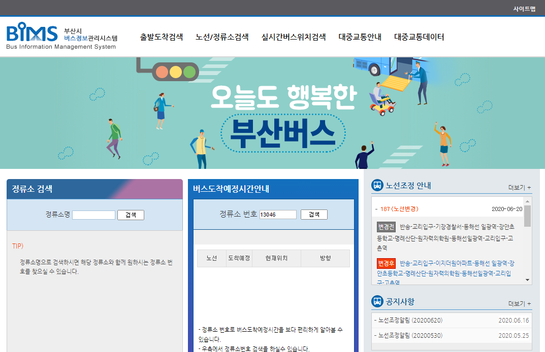 부산시 버스정보관리시스템 홈페이지에서는 부산 시내버스의 정보를 확인할 수 있습니다. 출발 및 도착 검색, 노선 검색, 첫차시간과 막차시간 검색 등을 할 수 있는데요.