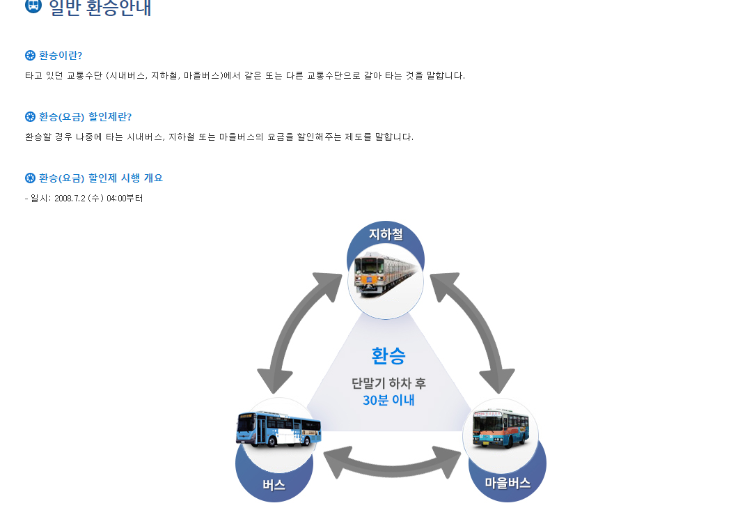 부산 시내버스의 환승 안내입니다. 시내버스, 지하철, 마을버스에서 다른 교통수단으로 갈아타는 것인데요. 2008년부터 시행되었네요. 동일 노선으로 환승 불가능합니다.