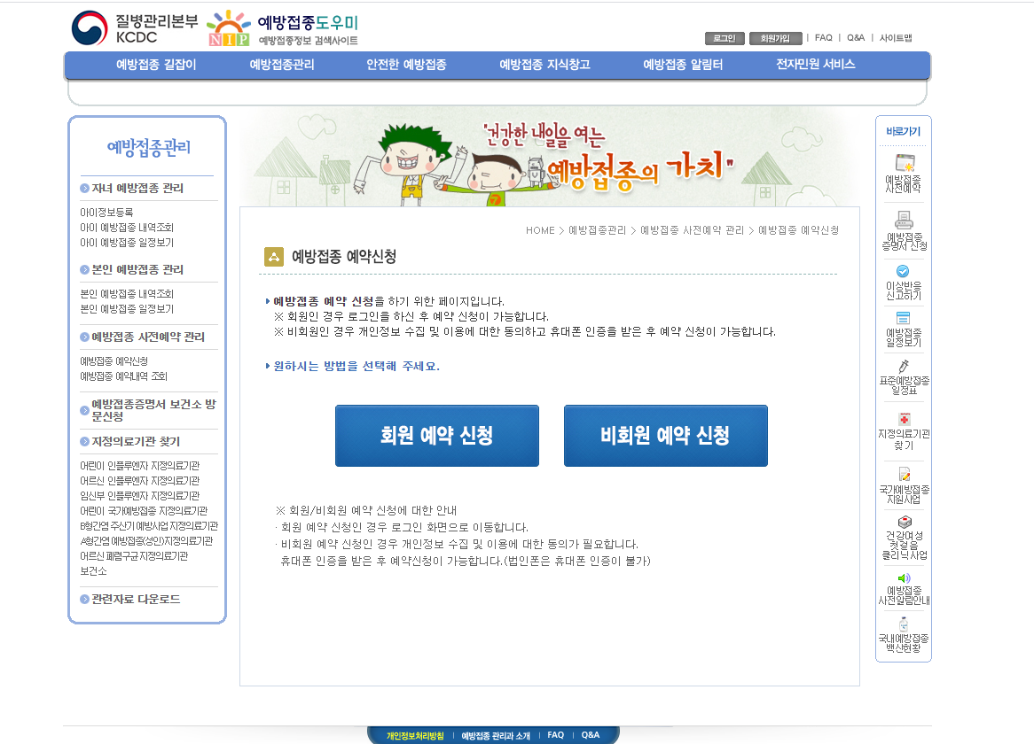 예방접종도우미 사이트에서는 예약신청도 가능합니다.
