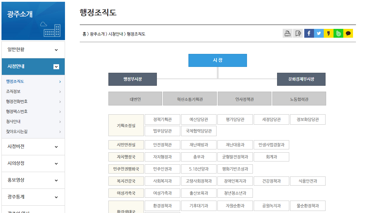 행정조직도도 여기서 확인할 수 있는데요. 담당자 전화번호도 확인해볼 수 있습니다.