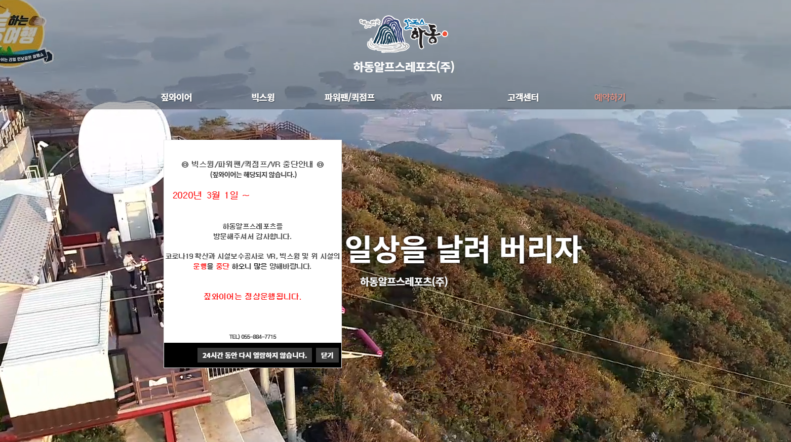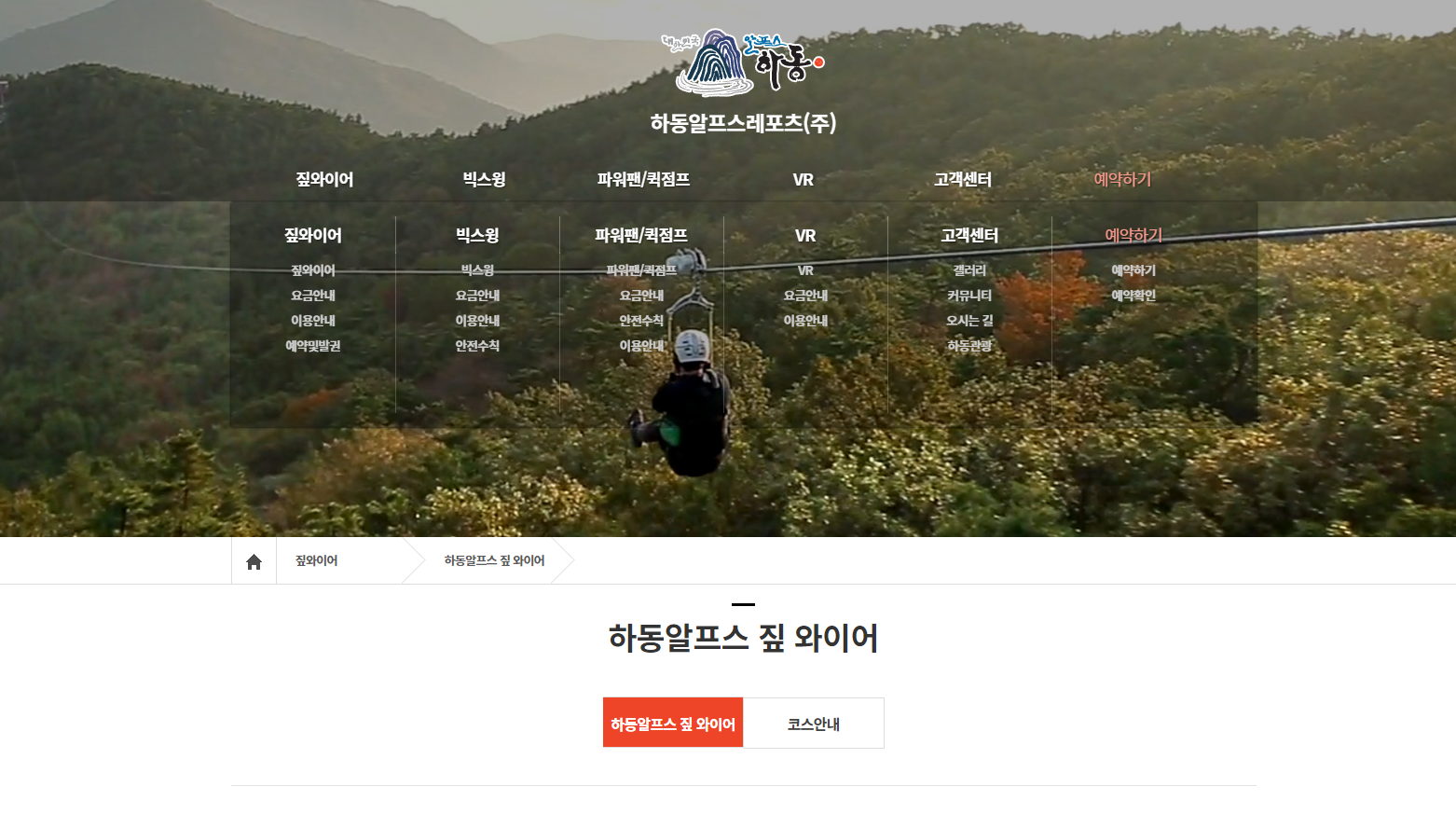 하동으로 여행가게 되면 시원한 바람을 가르며 짚라인을 타는 것도 참 좋은데요. 홈페이지에서 이렇게 요금안내, 이용안내를 볼 수 있습니다. 인터넷으로 예약도 가능해요.