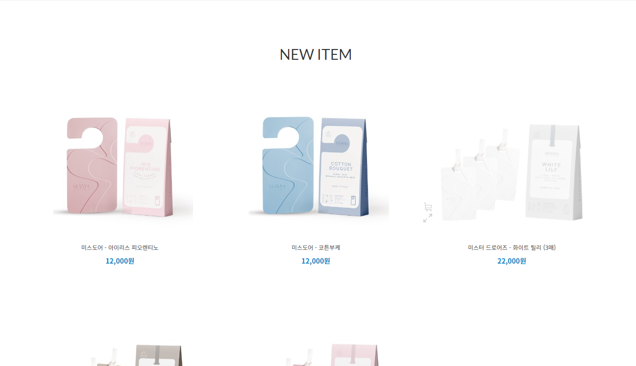 미스터앤미세스 미스도어입니다. 문이나 옷장에 걸어 두면 향긋한 향기가 나는 미스터앤미세스 방향제입니다. 향은 아이리스 피오렌티노, 코튼부케, 화이트 릴리 등이 있는데요. 디자인이 고급스러워요!!