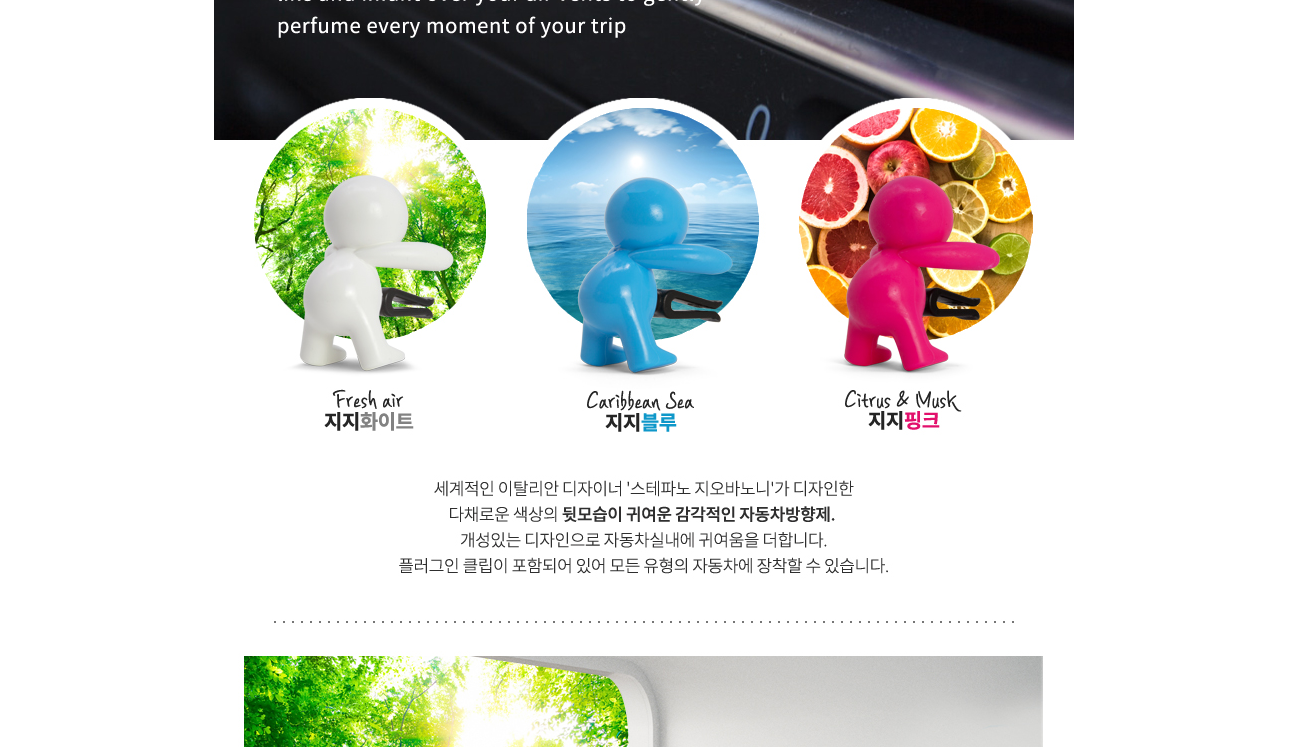 지지 화이트, 지지 블루, 지지 핑큭 ㅏ있어요!! 이탈리아 디자이너 스테파노 지오바노니가 디자인했다고 하는데요. 뒷모습이 너무나도 귀여워요!! Mr&Mrs 미스터앤미세스 차량용 방향제!! 남자친구 혹은 여자친구 선물로 굳입니다!!