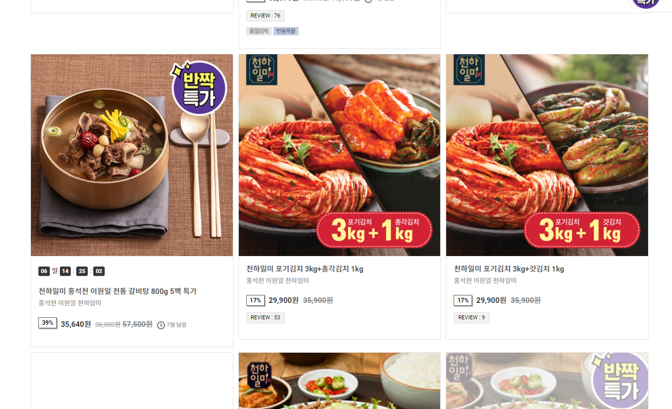 천하일미 홍석천 이원일의 전통 갈비탕과 포기김치도 있는데요. 포기김치 3kg + 총각김치 1kg의 가격은 29,900원입니다.