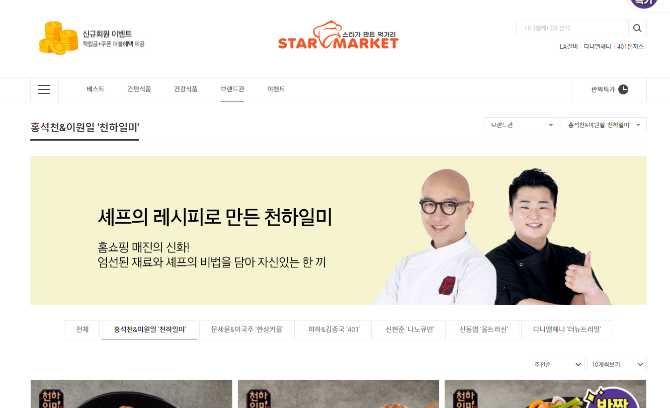 천하일미 LA갈비는 스타 마켓에서 구매가 가능합니다. 스타마켓은 스타가 만든 먹거리를 구매할 수 있는 온라인 쇼핑몰인데요. 홍석천&이원일의 천하일미, 문세윤&이국주의 한상커플, 하하&김종국의 401, 신현준의 나노큐인, 신동엽의 울트라산, 다니엘헤니의 더뉴트리밀이 있습니다.