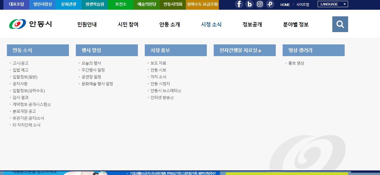 안동시청 홈페이지 바로가기