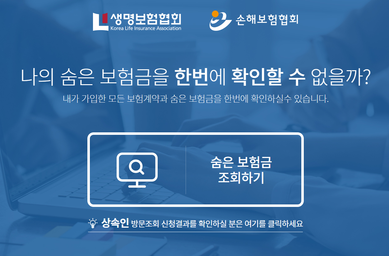 내보험 찾아줌이라는 유용한 사이트가 있는데요. 숨어 있는 보험금을 찾아주는 사이트예요. 내가 가입한 보험계약과 숨은 보험금을 조회할 수 있습니다.