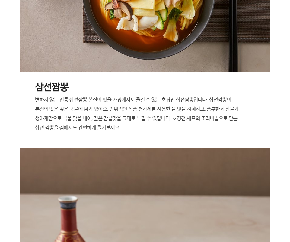 집에서도 즐길 수 있는 조선호텔의 호경전 삼선짬뽕!! 풍부한 해산물과 생야채로 국물 맛을 냈다고 하는데요. 맛이 깔끔할 것 같네요.