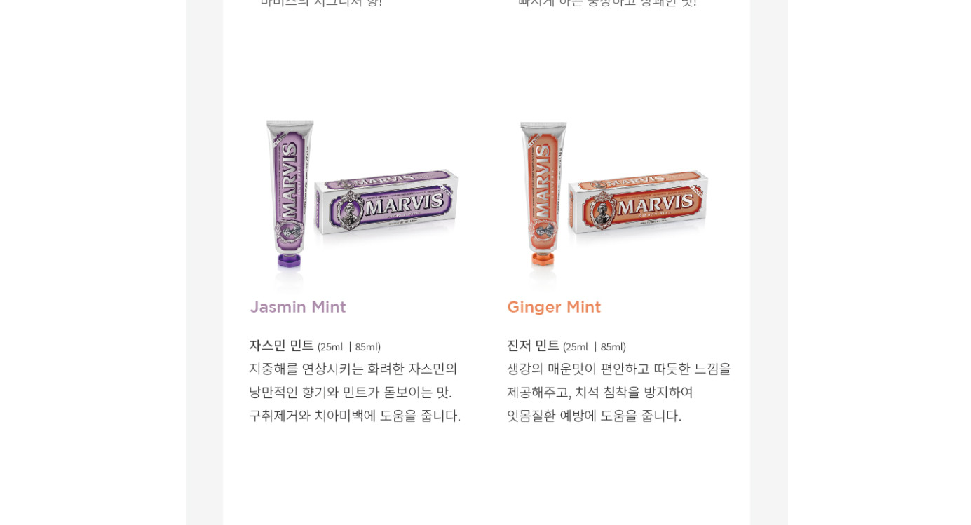 자스민 미트, 진저 민트 등 다양한 향이 있는데요. 패키지도 예쁘네요. ㅎㅎ