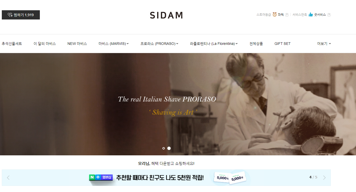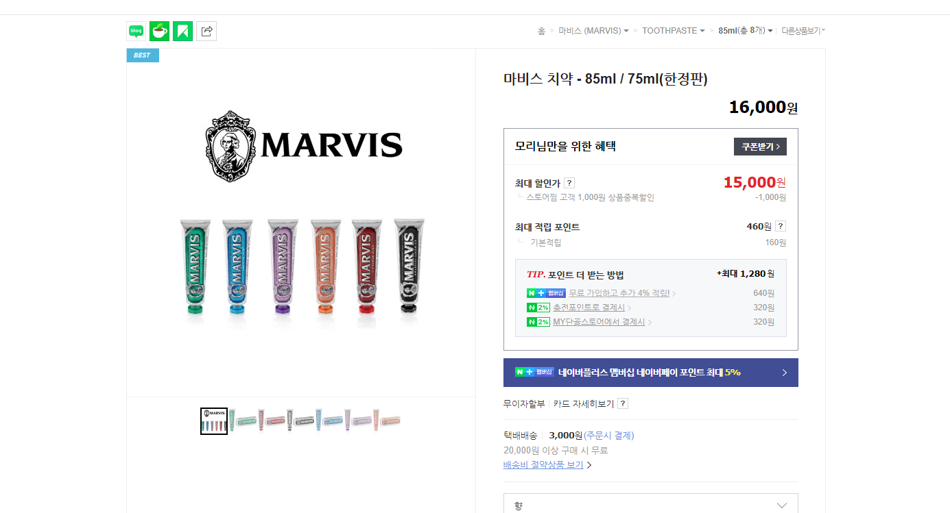 마비스치약은 시담에서 공식으로 수입하고 있는데요. 네이버 스마트스토어 쇼핑몰 방문해서 한번 구경해볼게요.