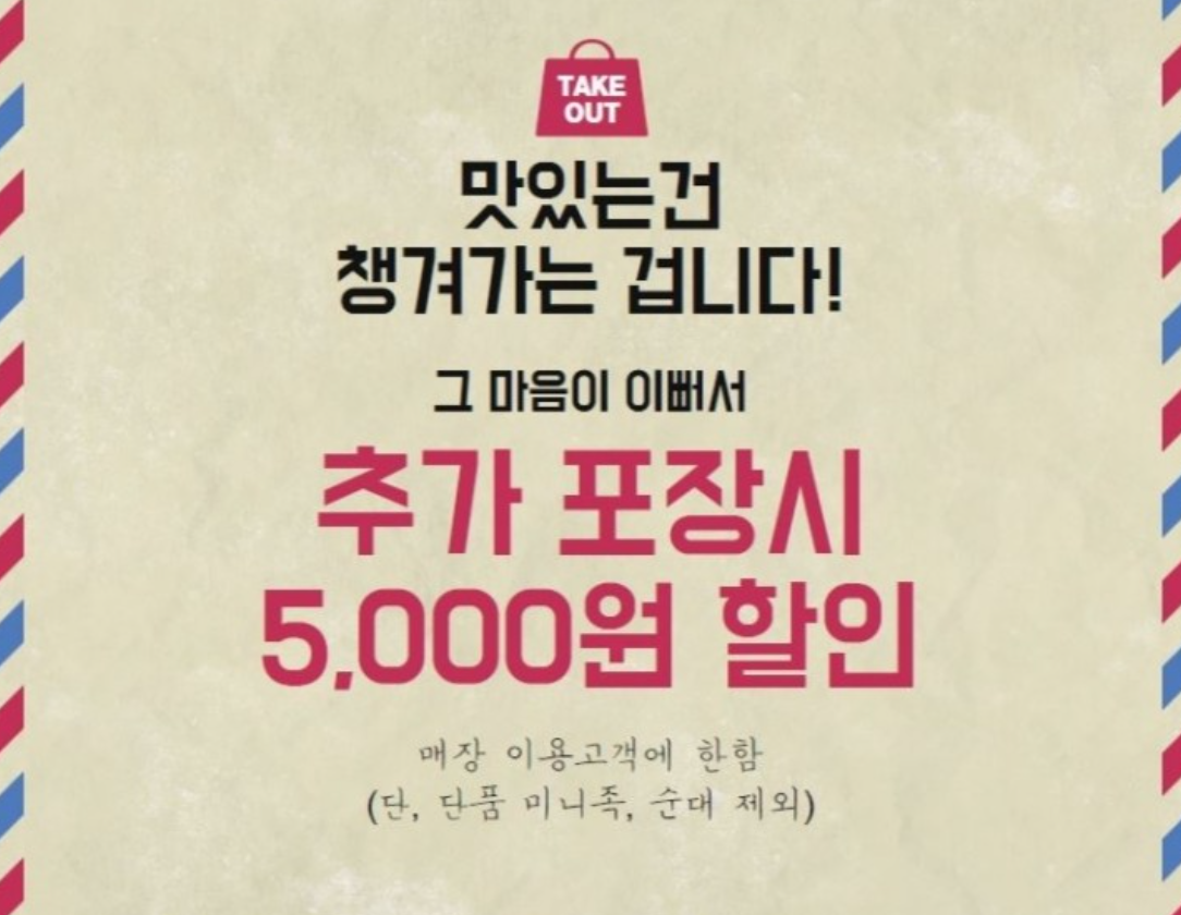 테이크아웃 추가 포장 하면 5,000원 할인!!