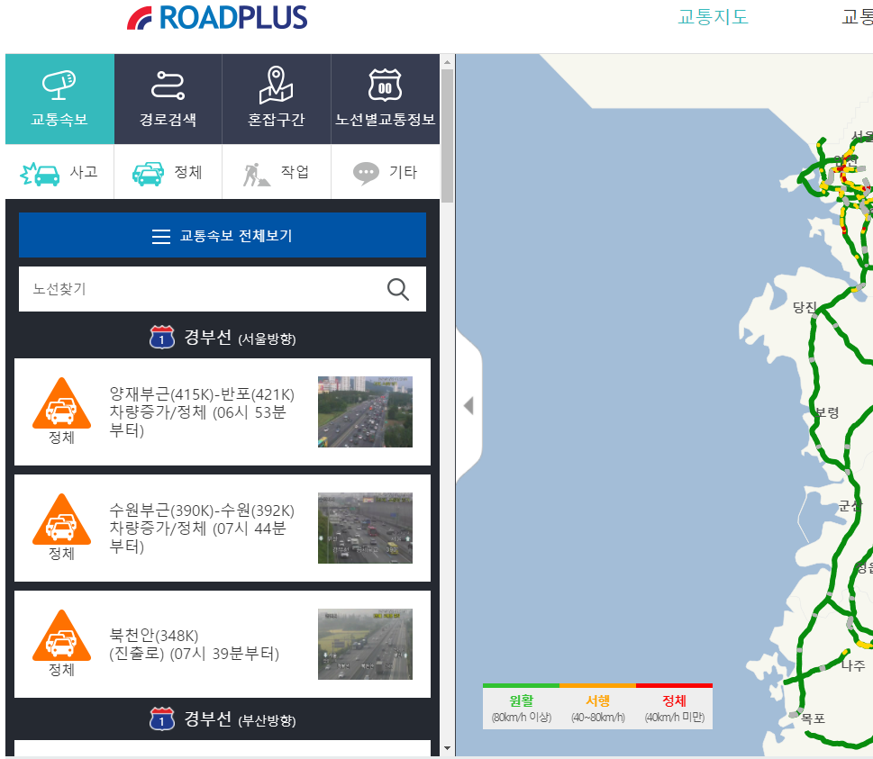 명절 추석 귀경길 혹은 귀성길에 꼭 보게되는 것이 고속도로 실시간 교통상황인데요. 지도를 통해서 고속도로 혹은 국도의 교통정보를 확인할 수 있지요.