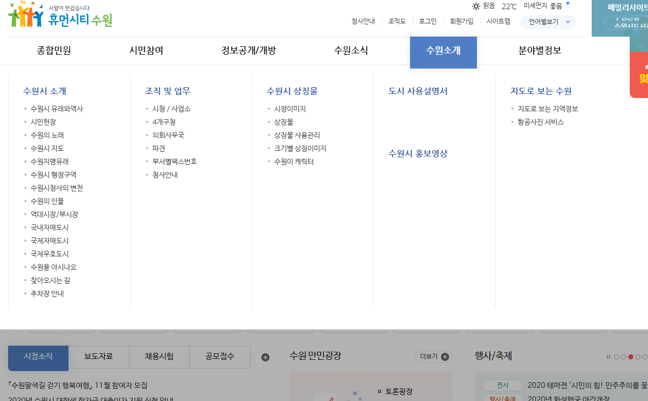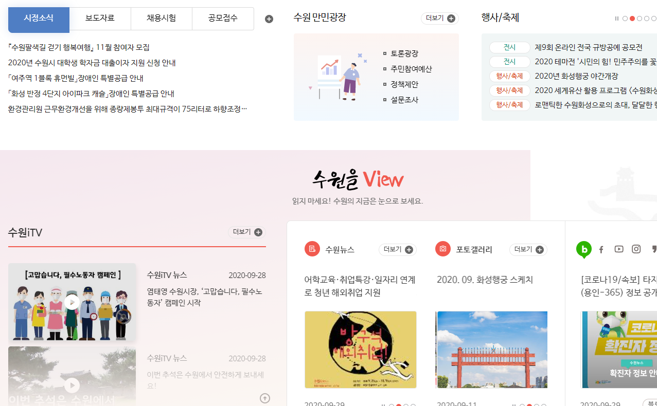 다들 추석 연휴 잘 보내고 계신가요? 수원시 지역 소식을 찾아볼 수 있는 수원시청 홈페이지에 방문해보았습니다.