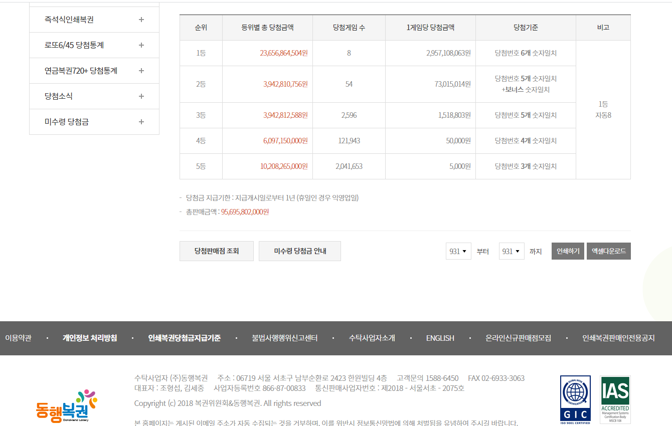 매주 토요일은 로또 당첨결과가 발표되는 날이죠. 10월 3일에는 931회 로또 당첨결과가 나왔는데요. 동행복권 홈페이지에서 조회할 수 있습니다.