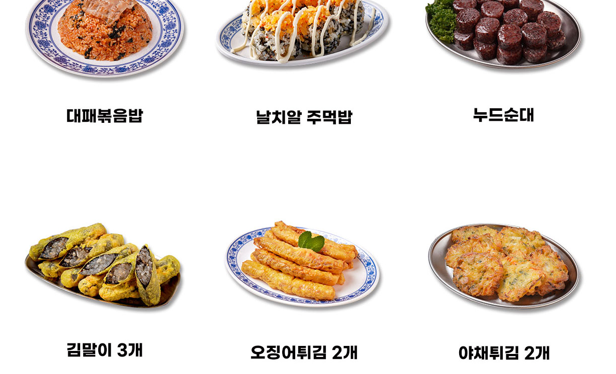 대패볶음밥, 날치알주먹밥, 누드순대, 김말이, 오징어튀김, 야채튀김도 맛있어 보이네요 ㅎㅎ