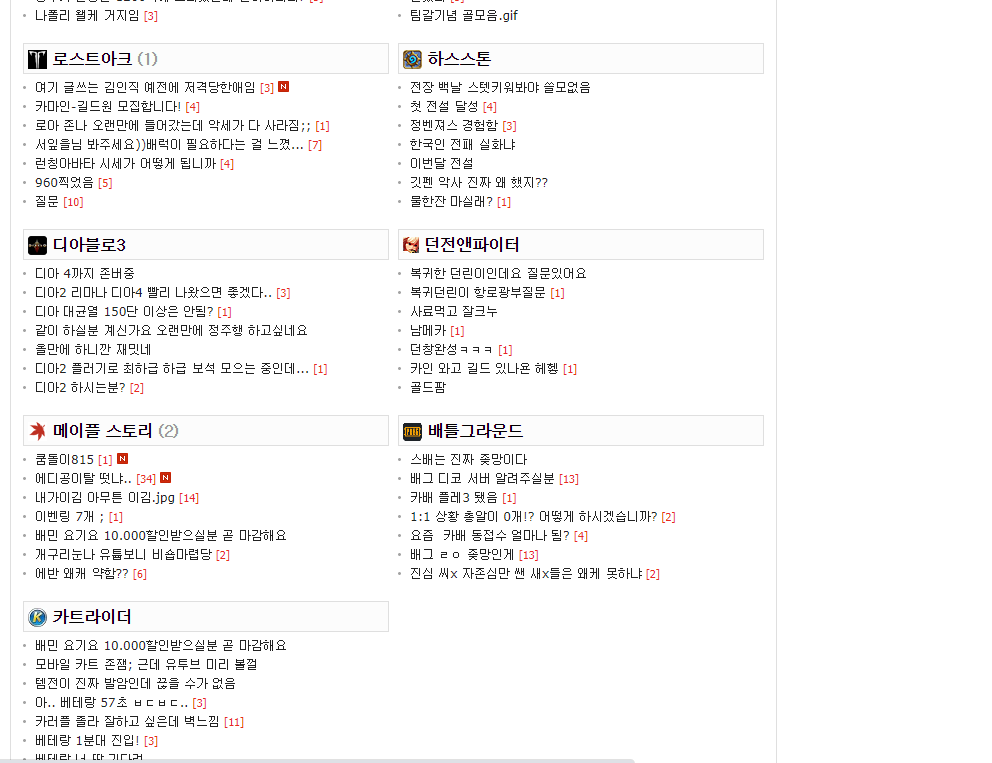 로스트아크, 하스스톤, 던전앤파이터, 디아브롤3, 메이플스토리, 배틀그라운드, 카트라이더 등 인기 있는 게임의 커뮤니티 게시판이 있습니다. 와이고수에서 정보를 주고 받는 것도 좋을 것 같아요.