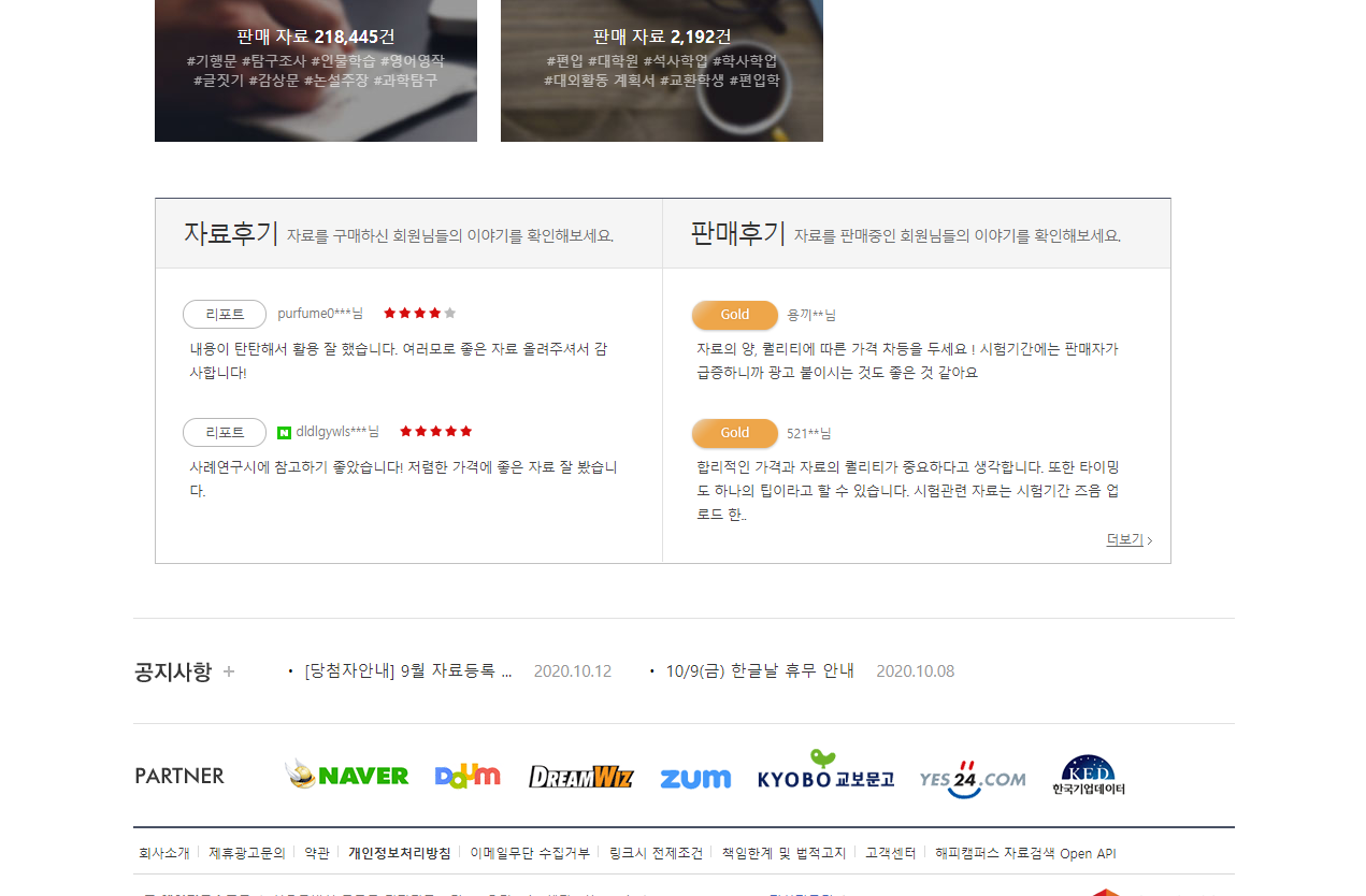 경영/경제/독후감/법학/사회과학/디자인소스/프로그램소스 등의 리포트가 있고요. 인문학/사회과학/자연과학/공학/의약학 등의 논문 자료가 있습니다. 취업 자기소개서나 학교 자기소개서가 있고요. 방송통신대 중간시험, 기말시험 계절시험 자료도 있습니다. 중간과제물이나 핵심요약노트, 출석대체시험에 관한 자료가 있는 것 같더라고요.
