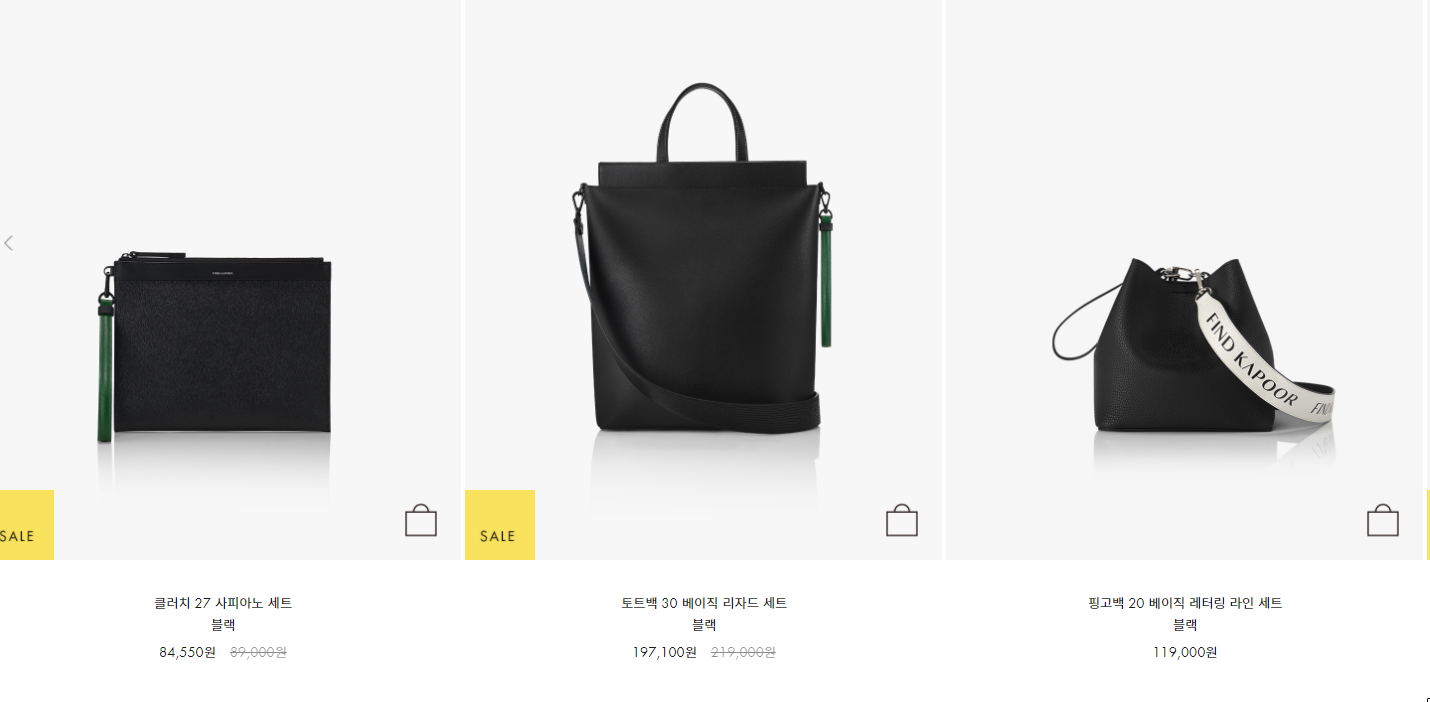 가방으로 유명한 파인드카푸어! 온라인 스토어 방문해서 제품들을 살펴보았습니다. 클러치백, 토드백 등 예쁜 남성가방 여성 가방 등이 있어요.
