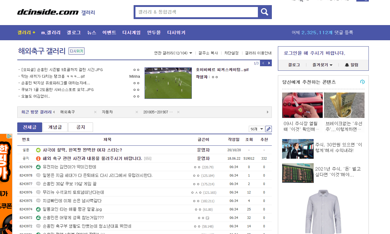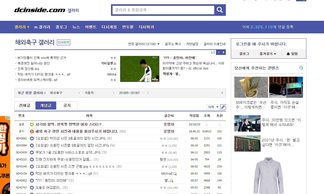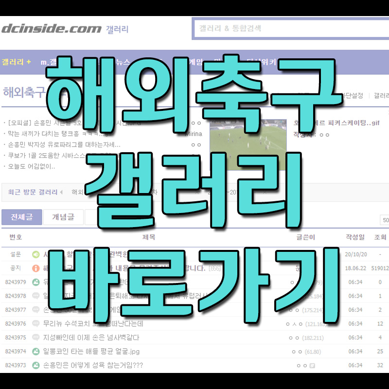 디시인사이드에는 여러 갤러리가 있는데요. 그 중에 하나인 해외축구갤러리를 소개해드릴려고 해요. 축구 스포츠에 관심이 있으신 분들은 많이 방문하실 것 같은 페이지인데요. 줄여서 해축갤러리라고도하죠.