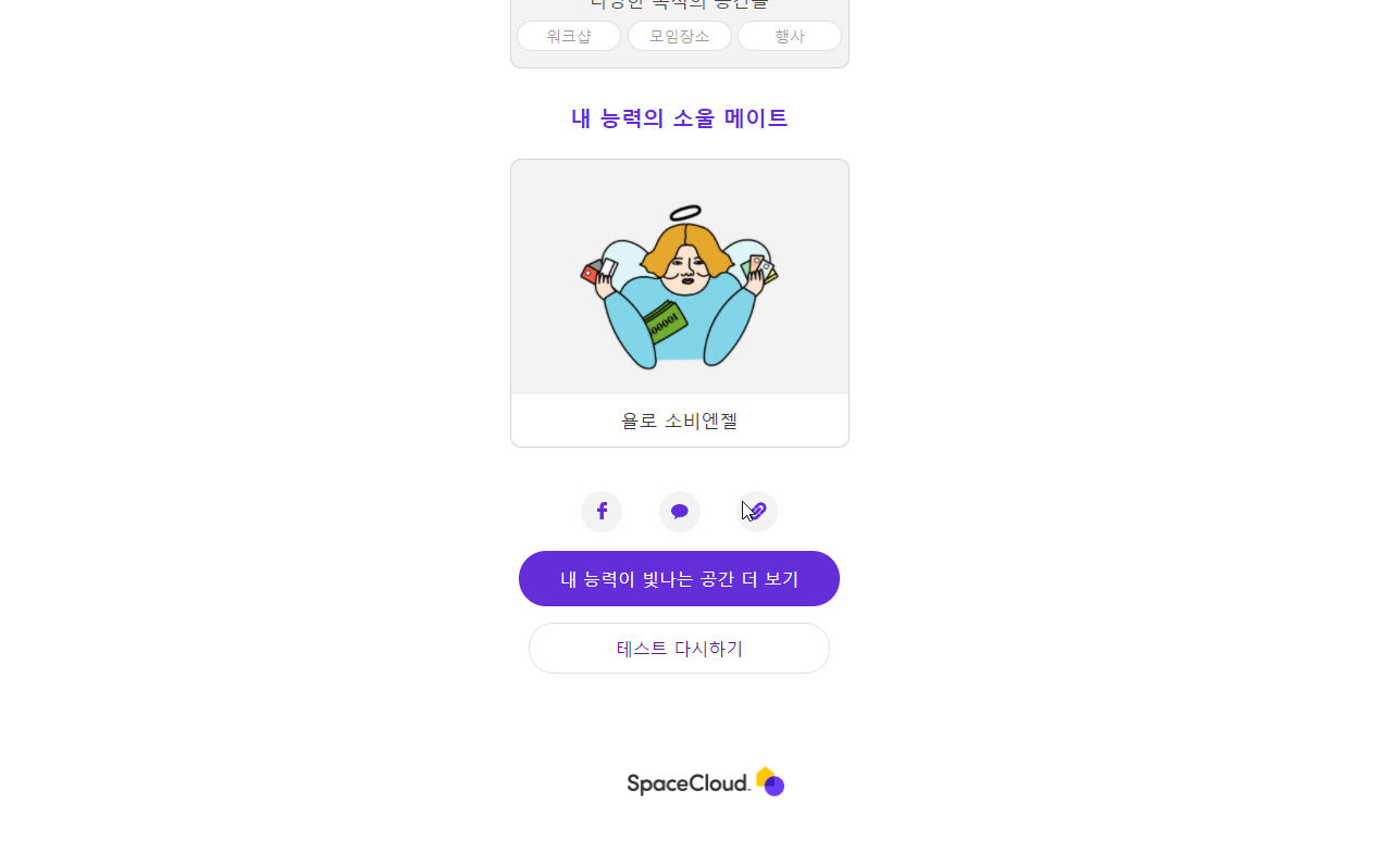 저와 잘 맞는 능력 소울 메이트는 욜로 소비엔젤이라고 합니다!! 핵심능력 테스트 한번 해보세요!! 바로가기는 아래 링크를 클릭하시면 됩니다.