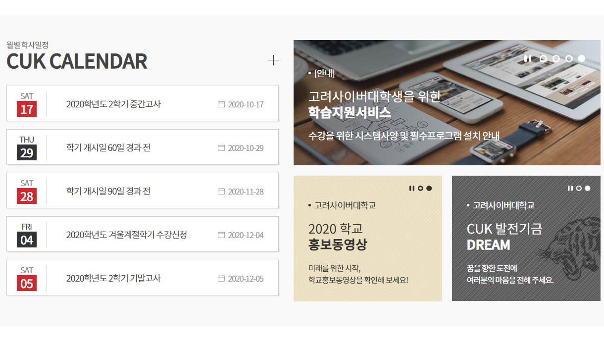 고려사이버대학교 홈페이지에서는 각 학과의 소식을 확인해볼 수 있어요.