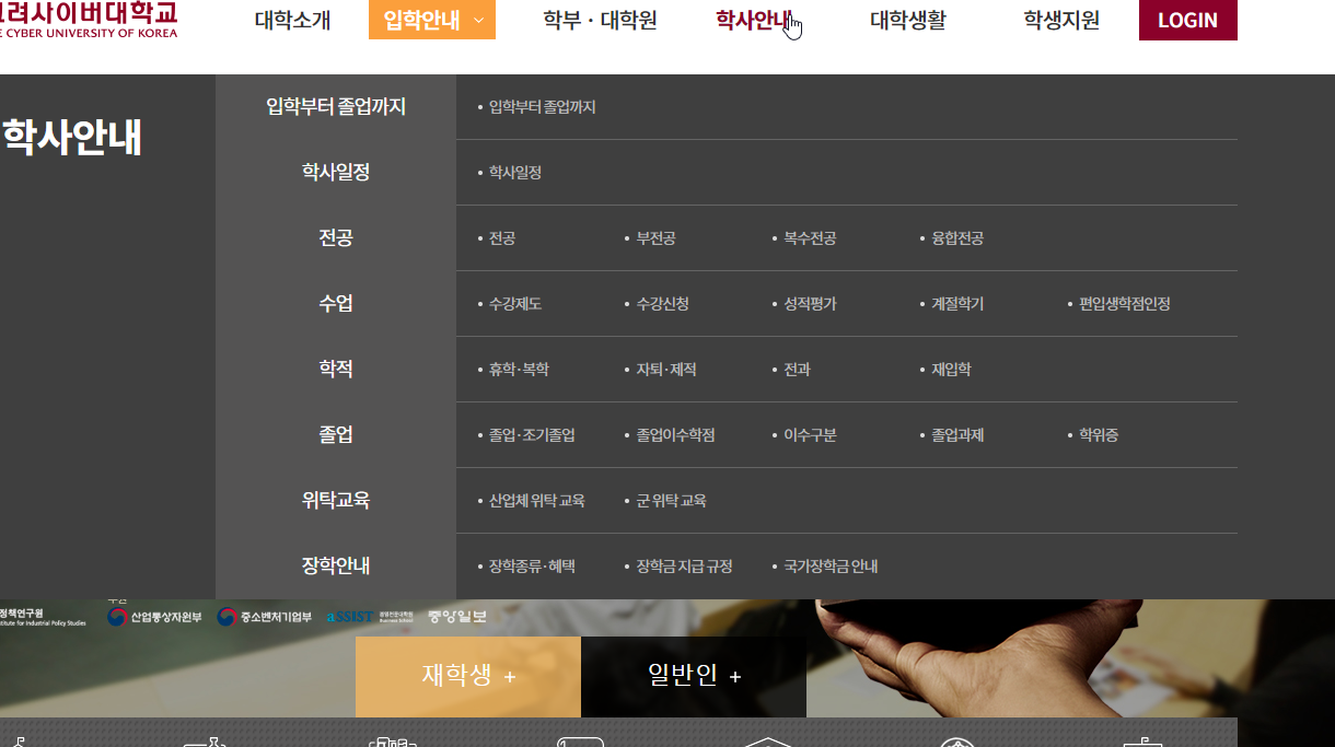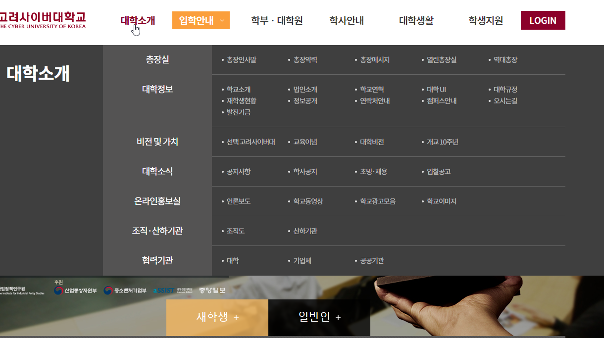 직장인분들은 고려사이버대학교를 통해서 학위를 취득하시는 경우가 많은데요. 해당 홈페이지 소개해드리겠습니다.