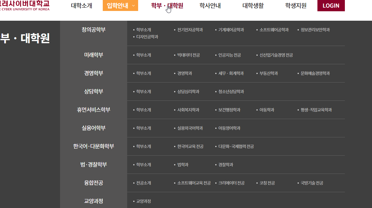 고려사이버대학교에 입학하시고자 하시는 분들은 사이트 방문하셔서 신입학 모집요강, 편입학 모집요강, 지원절차 안내 확인해보시기 바랍니다.