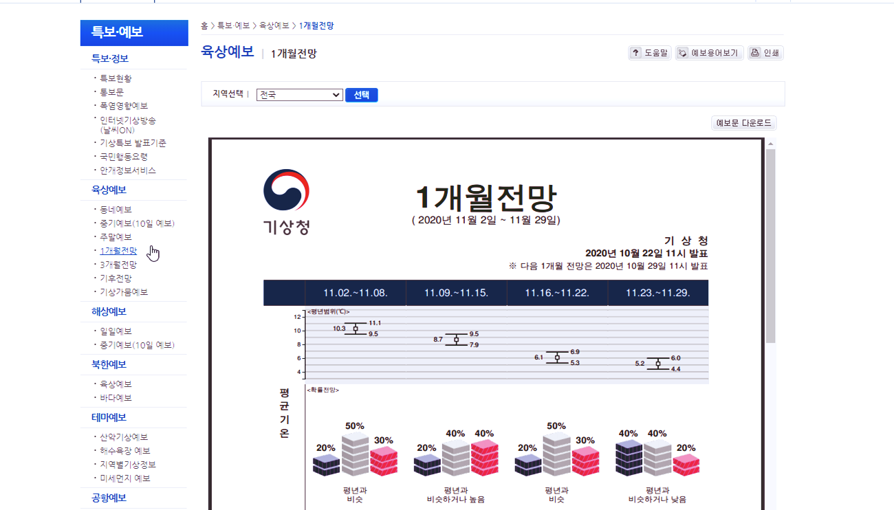 1개월전망, 3개월전망도 있습니다. 오늘 대전의 날씨 확인하시기 바랍니다.