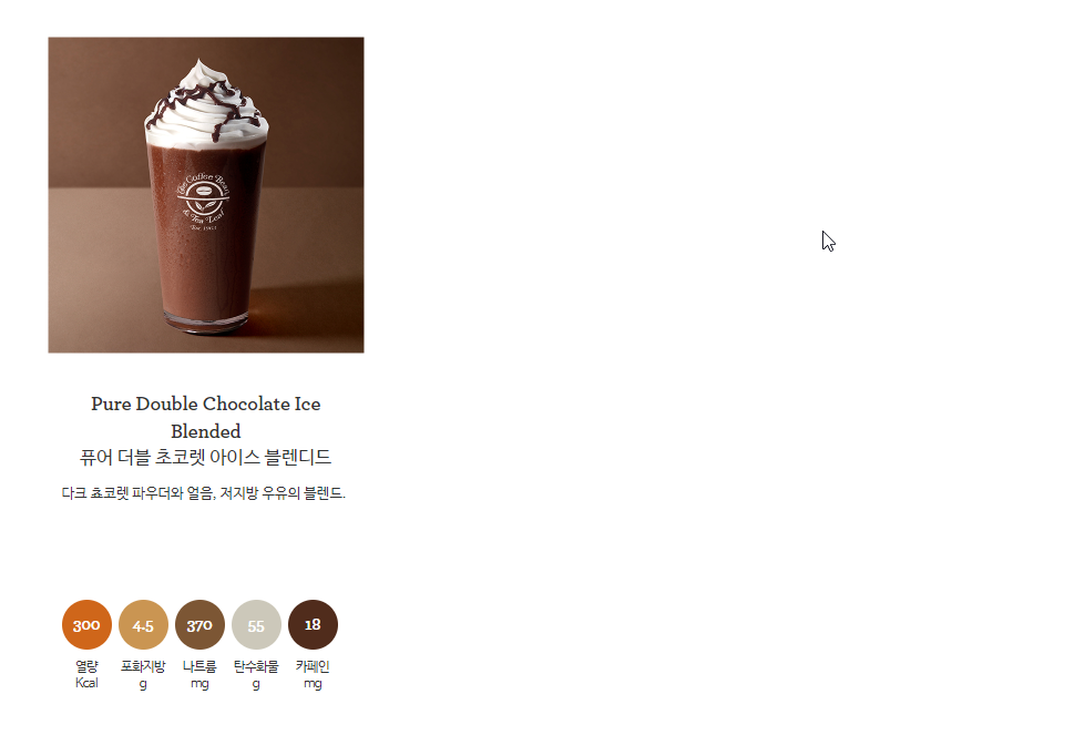 퓨어 더블 초코렛 아이스 블렌디드도 존맛탱일 것 같아요!! 커피빈코리아 카페에는 다양한 음료가 있어서 좋군요.