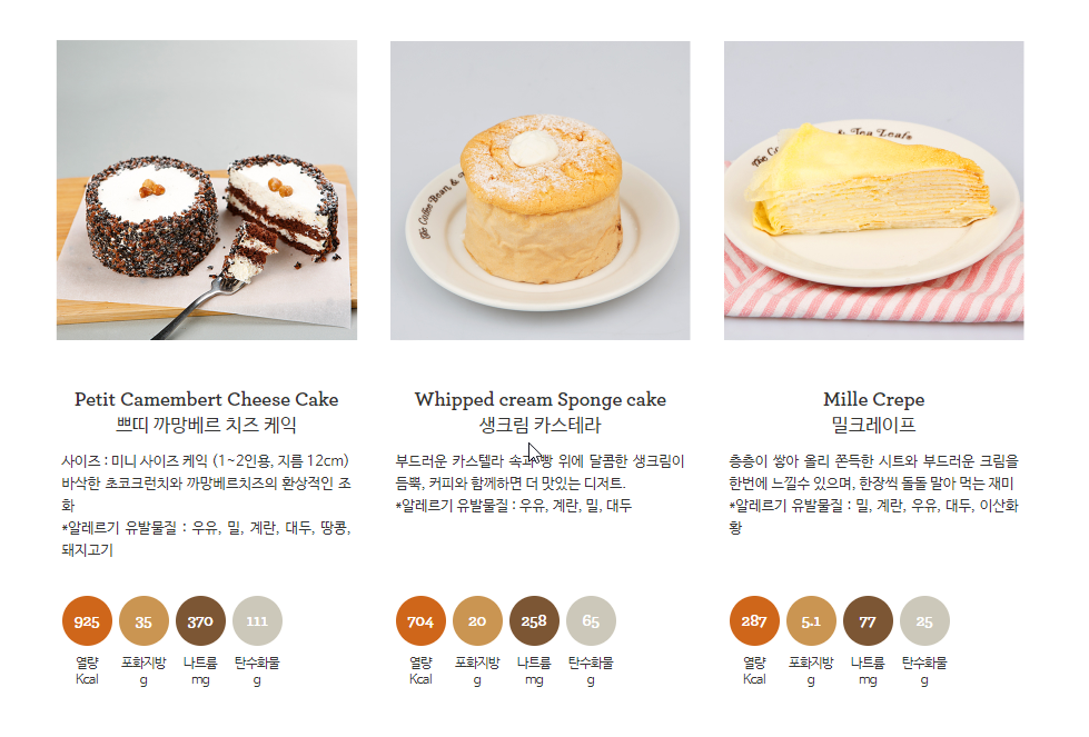 쁘띠 까망베르 치즈 케이크, 생크림 카스테라, 밀크레이프도 먹어보고 싶네요. ㅠㅠ