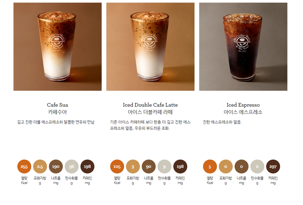 커피빈 메뉴 중에서는 카페수아, 아이스 더블카페 라떼, 에스프레소가 있는데요. 카페수아는 진한 더블 에스프레소와 연유가 조합된 메뉴입니다!!