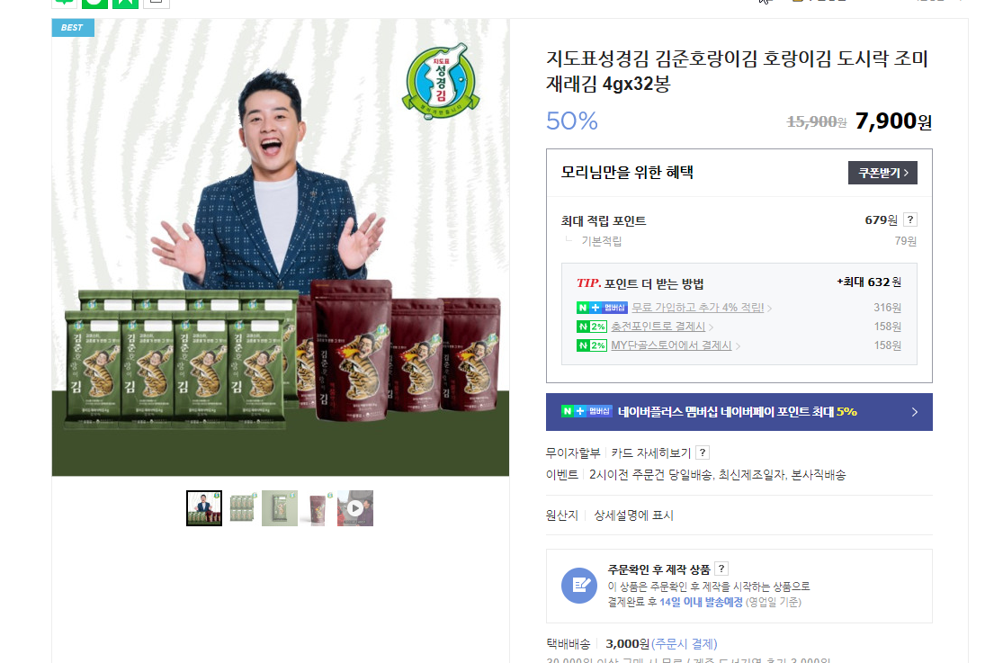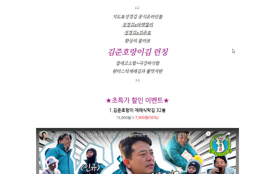 김준호랑이김은 성경식품 본사공식몰에서 구매할 수 있는데요. 글하단에 구매링크 있으니까 그거 클릭하셔서 구매하러 가시면 됩니다.