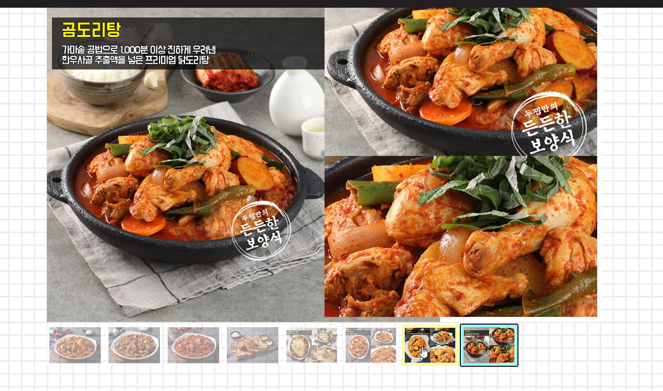 두마리찜닭에는 곰도리탕이라고 해서 가마솥 공법으로 1,000분 이상 진하게 우려낸 한우사골 추출액을 넣어서 만든 프리미엄 닭도리탕이라고 합니다.