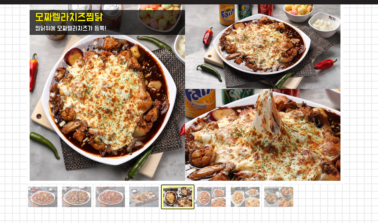 모짜렐라 치즈 찜닭도 있는데요. 찜닭 위에 모짜렐라 치즈가 듬뿍 들어있어요.