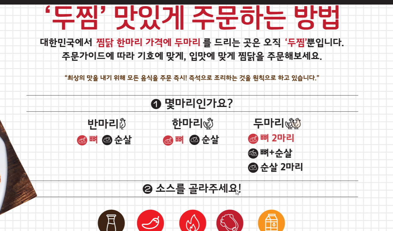 찜닭 한마리 가격에 두마리를 주기 때문에 이름이 두찜인가본데요.