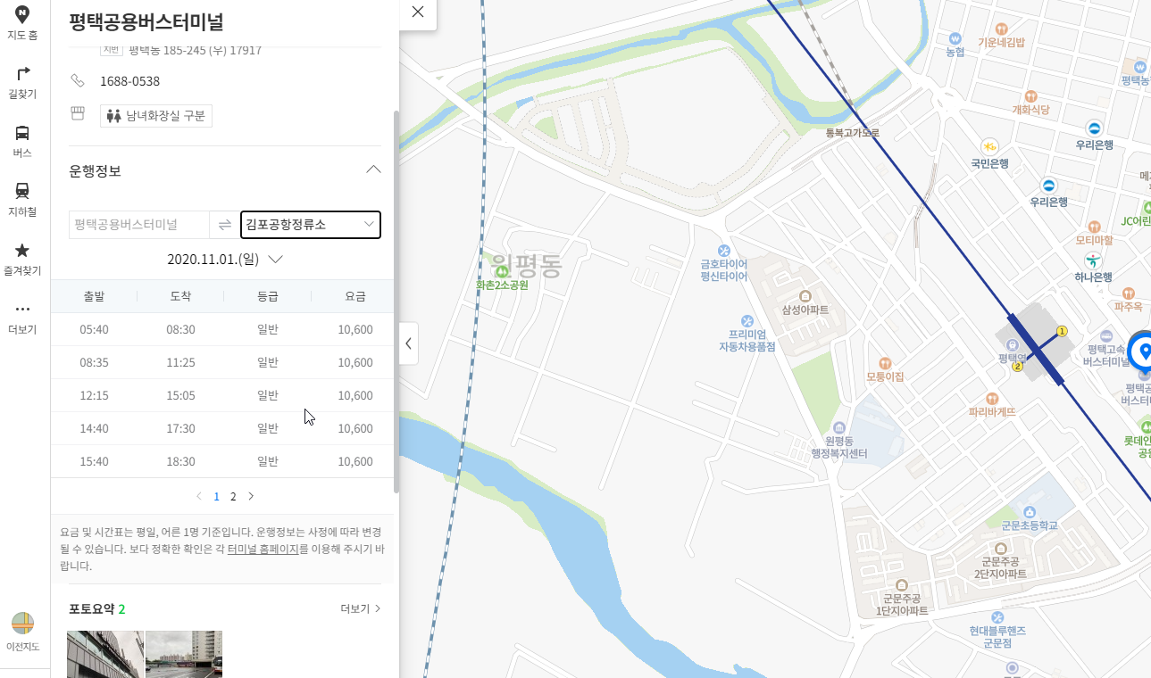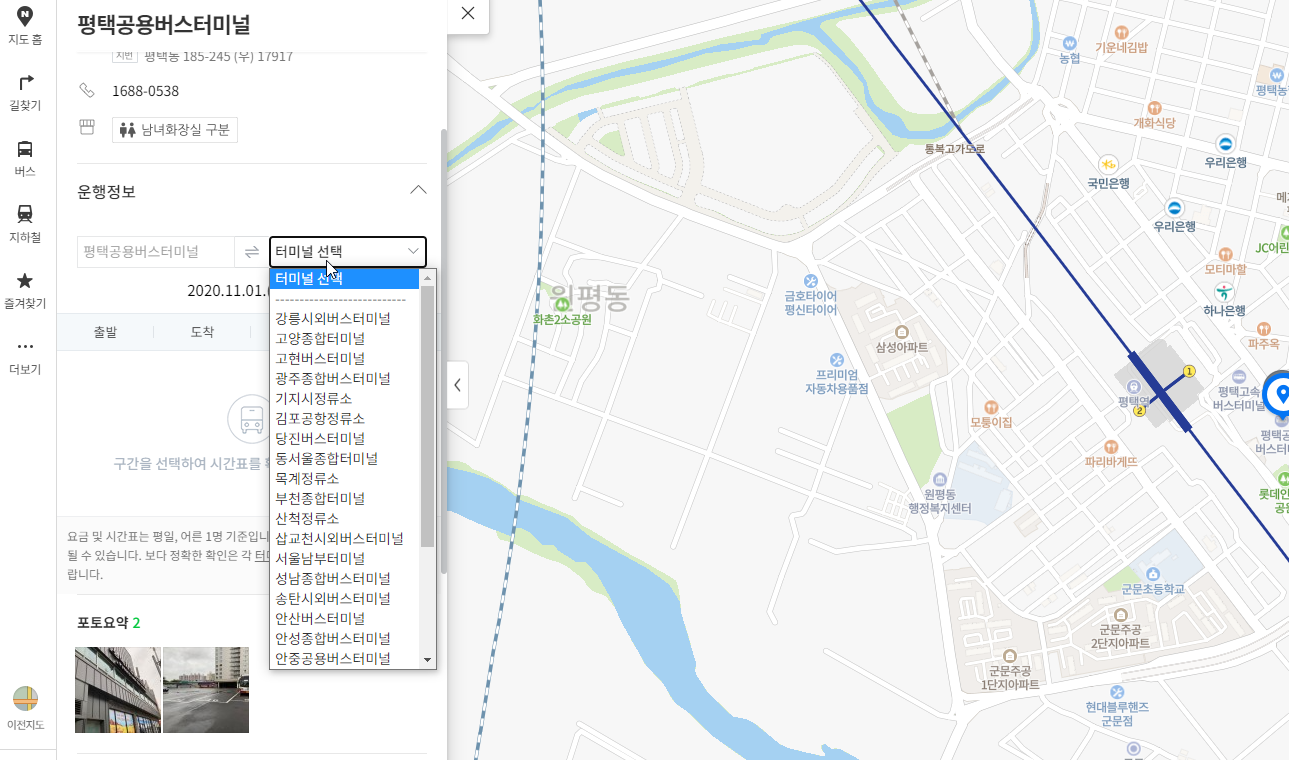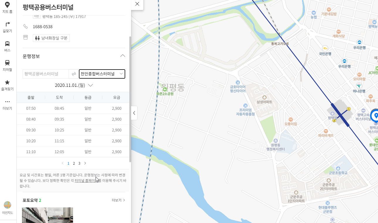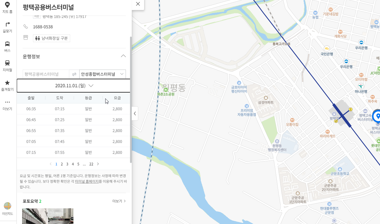 평택시외버스터미널 시간표 보기 - 네이버지도