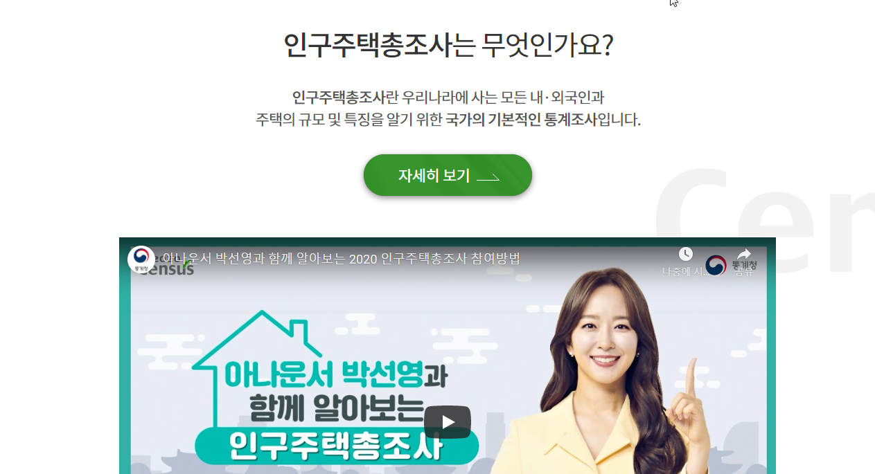 2020 인구주택총조사는 우리나라에 사는 모든 내국인과 외국인 그리고 주택의 규모 및 특징을 확인하기 위해 실시되는 조사인데요. 국가의 기본적인 통계조사입니다. 관련 유튜브 소개 영상 있으니 한번 시청해보시기 바랍니다.