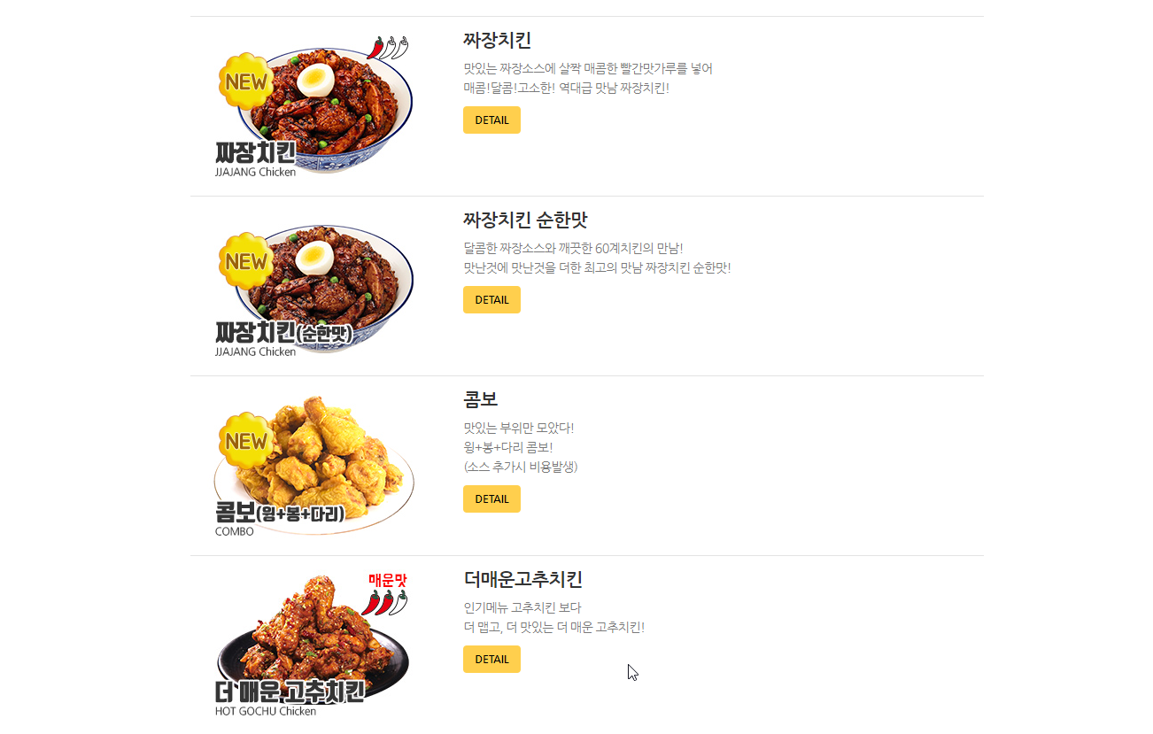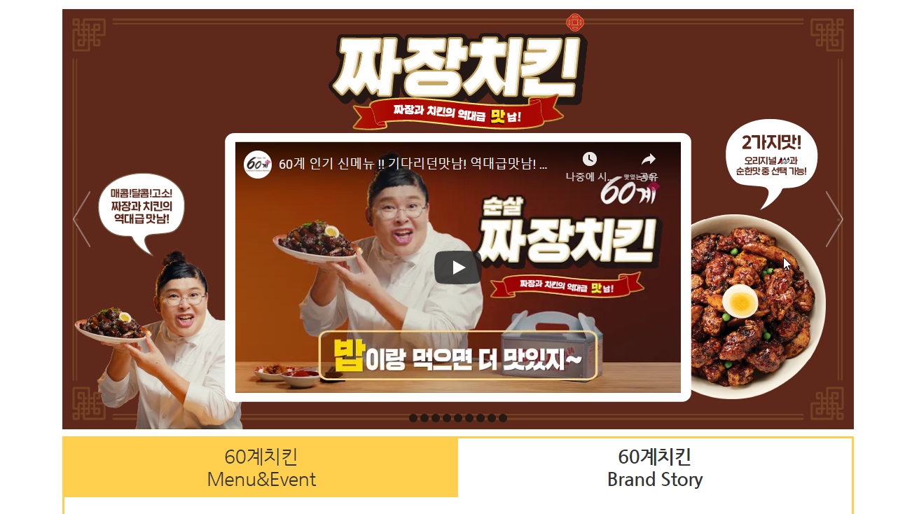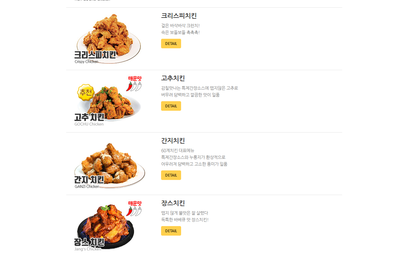 크리스피치킨, 고추치킨, 간지치킨, 장스통닭이 있는데요. 저는 고추 치킨 60계치킨 메뉴 추천드려요.