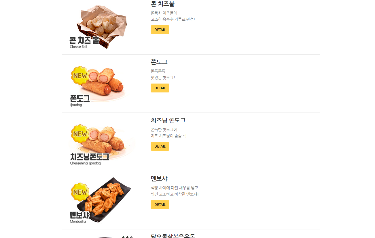 콘 치즈볼, 쫀도그, 치즈닝쫀도그, 멘보샤도 있는데요. 넘나 맛있어 보이네요. 식빵 사이에 다진 새우가 들어간 멘보샤는 넘나 맛있지요.
