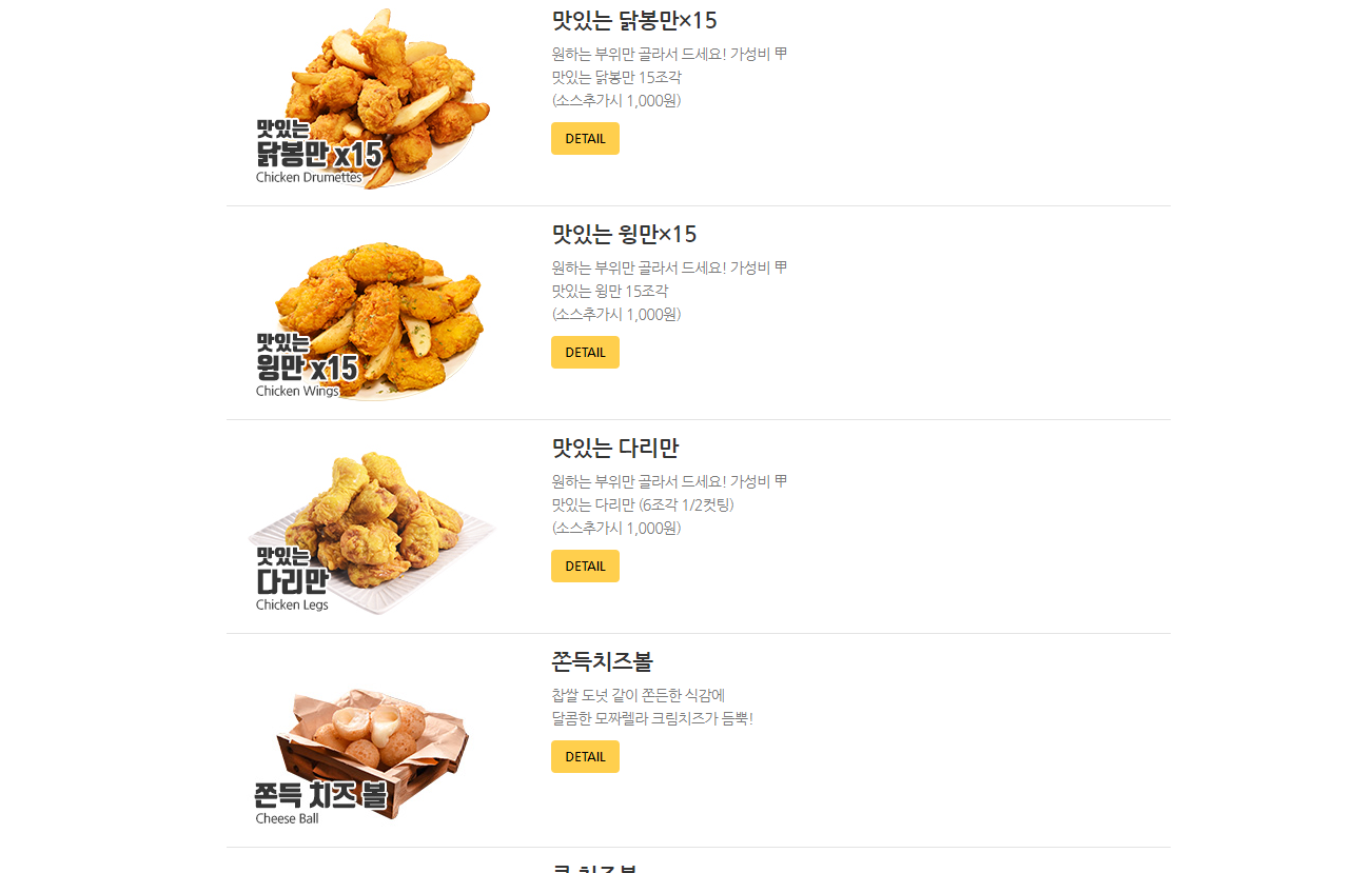 닭봉만, 윙만, 다리만 메뉴도 있고요. 쫀득 치즈볼도 있어요!! 찹쌀 도넛 같은 쫀득한 식감이 일품인 메뉴이지요.
