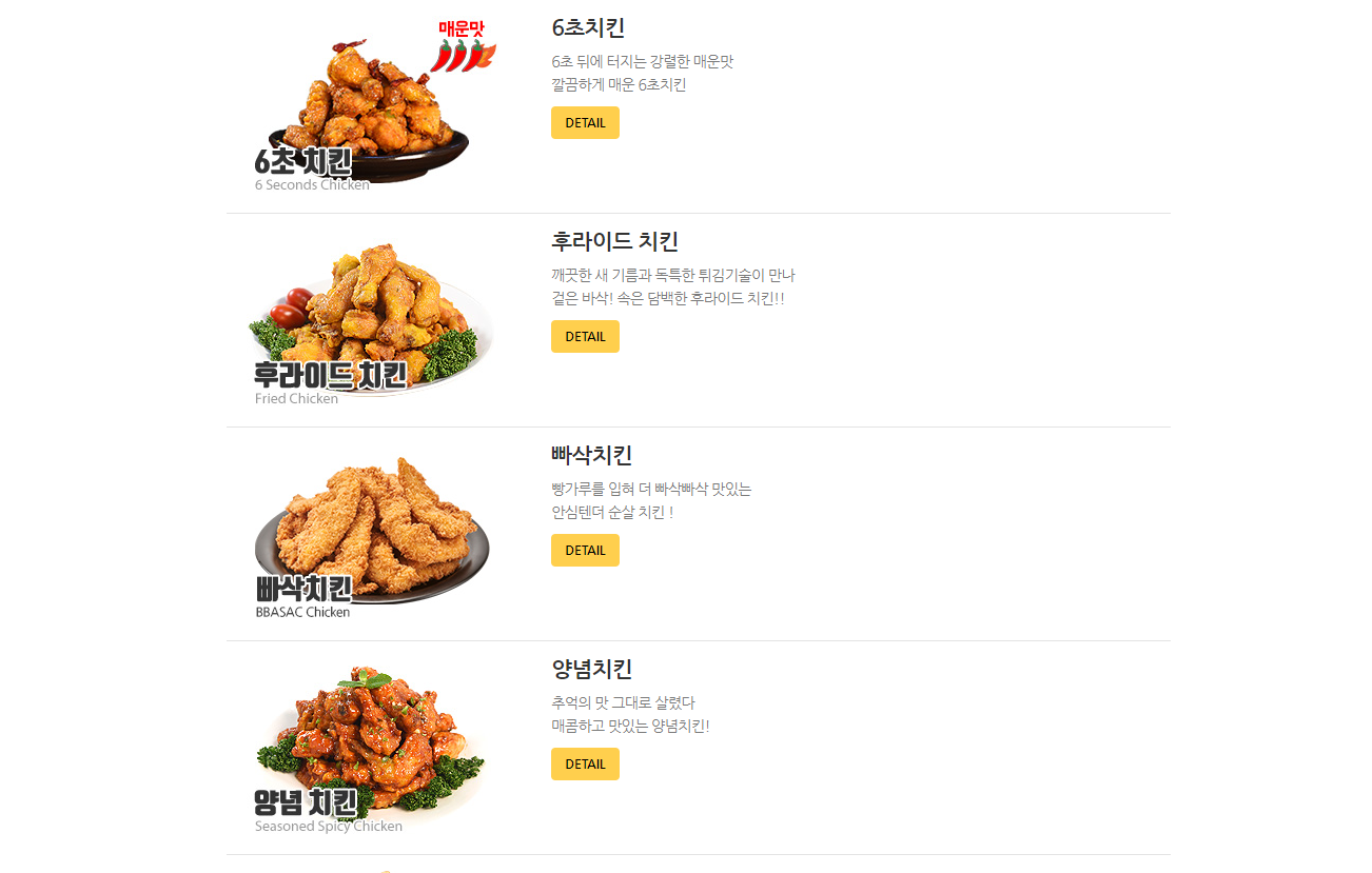 6초, 후라이드 ,빠삭, 양념이 있는데요. 빵가루를 입혀 더 바삭바삭한 안심텐더 순살인 빠삭치킨도 추천드립니다!!