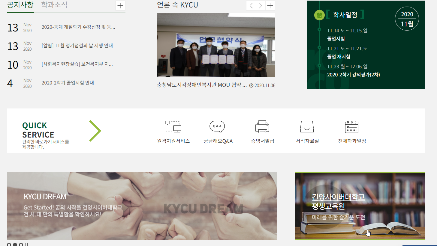 건양사이버대학교 홈페이지